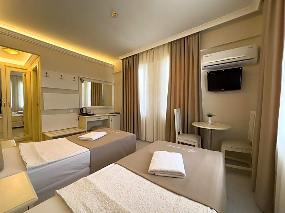 With its beach umbrellas, bar, and restaurant, creates the perfect setting for a dreamy vacation. Whether lounging on the beach chairs, savoring delicious meals, or enjoying the view from the balcony or terrace, guests will be enveloped in luxury and hospitality. Non-smoking rooms, kids' meals (extra charges may apply), and room service are among the additional amenities that promise a comfortable and enjoyable stay at this delightful hotel in Alanya.